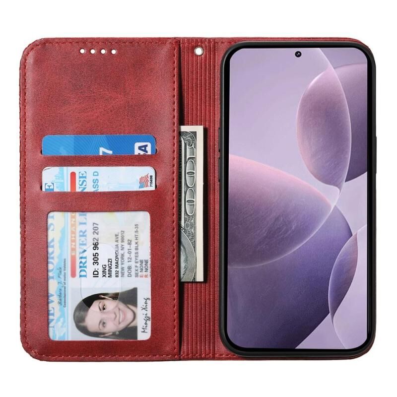 For Xiaomi 15 Ultra Cubic Grid Calf Texture Magnetic Leather Phone Case(Red)