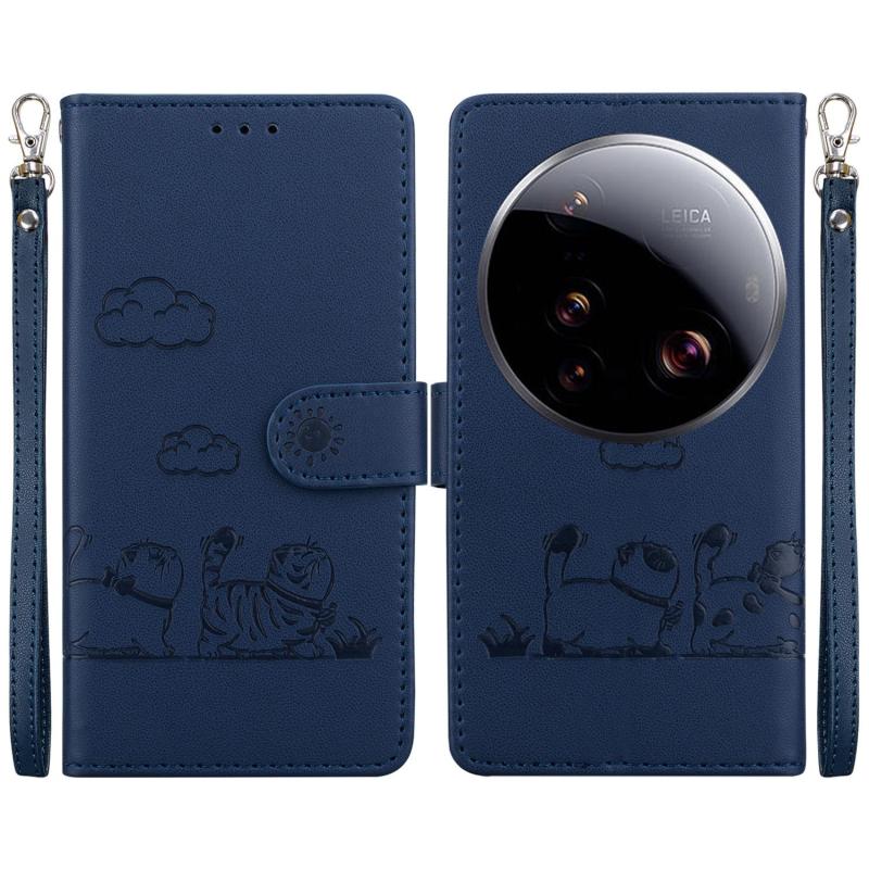 Θήκη τηλεφώνου από δέρμα με χαριτωμένες γάτες RFID για Xiaomi 15 Ultra (Πράσινο)