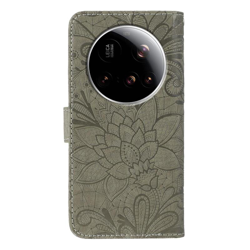 For Xiaomi 15 Ultra Lace Flower Embossing Flip Leather Phone Case(Grey)