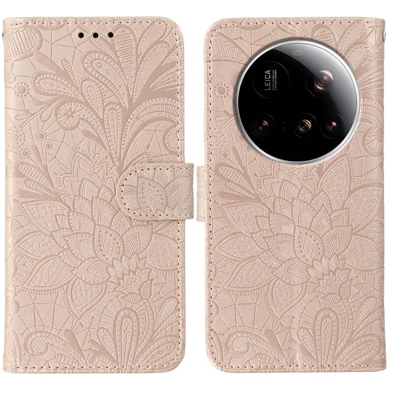 For Xiaomi 15 Ultra Lace Flower Embossing Flip Leather Phone Case(Rose Gold)