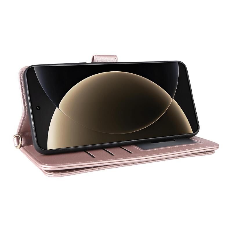 For Xiaomi 15 Ultra Multifunctional 6-Card Slots Leather Phone Case with Wrist Strap(Pink)