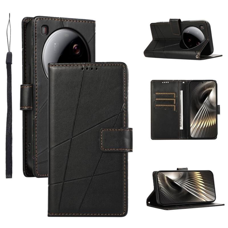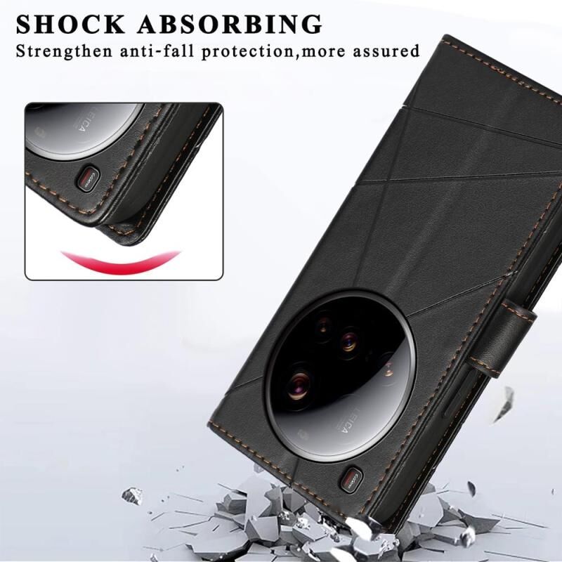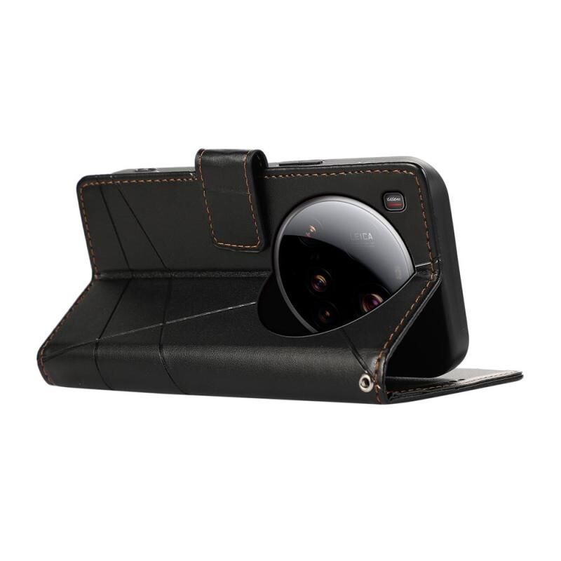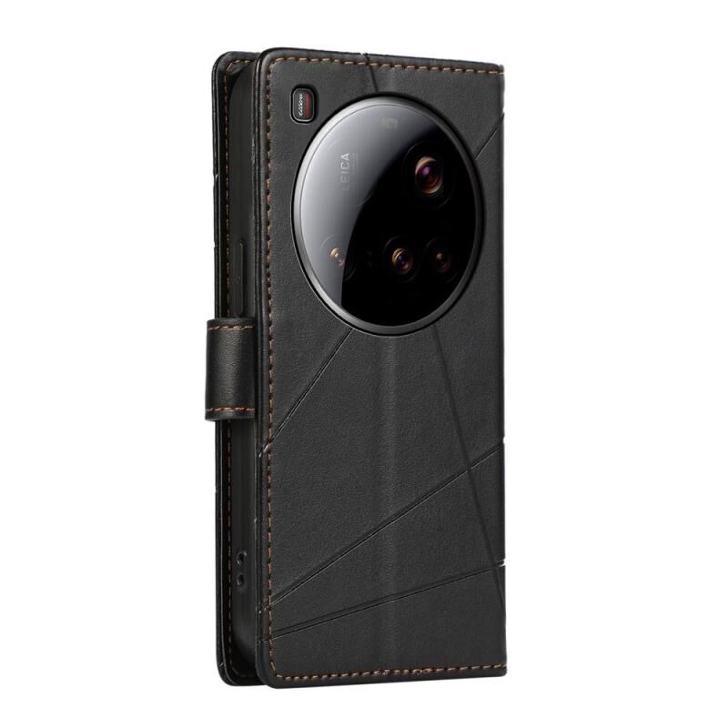 Θήκη τηλεφώνου Xiaomi 15 Ultra από γνήσιο δέρμα PU με ανάγλυφη υφή και λεπτομέρειες γραμμής (Μαύρο)