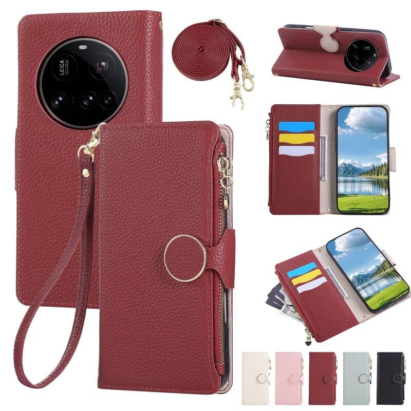 For Xiaomi 15 Ultra Round Buckle Zipper Wallet Leather Phone Case with Crossbody Strap(Red)