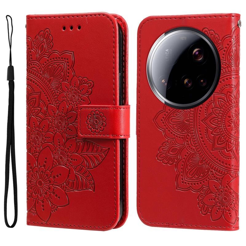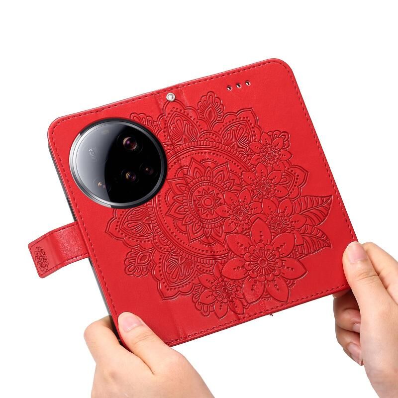 Θήκη τηλεφώνου από δέρμα με ανάγλυφο επτά πέταλα λουλουδιών για Xiaomi 15 Ultra (Ανοιχτό Μωβ)