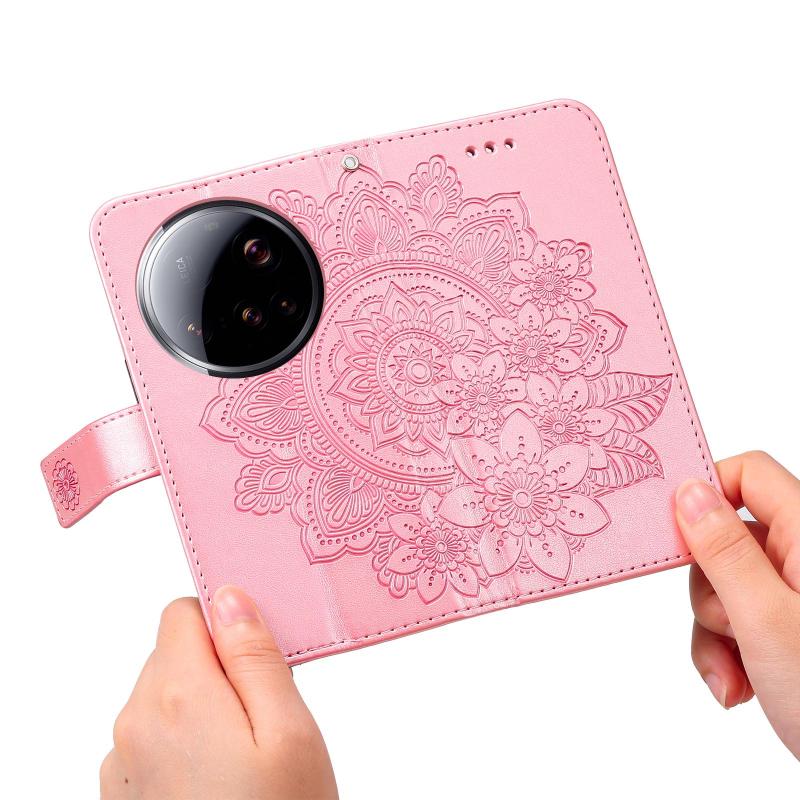 For Xiaomi 15 Ultra Seven-petal Flowers Embossing Leather Phone Case(Rose Gold)