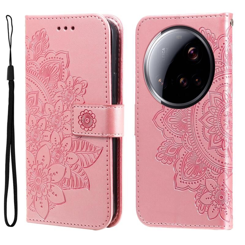 Θήκη τηλεφώνου από δέρμα με ανάγλυφο επτά πέταλα λουλουδιών για Xiaomi 15 Ultra (Ανοιχτό Μωβ)