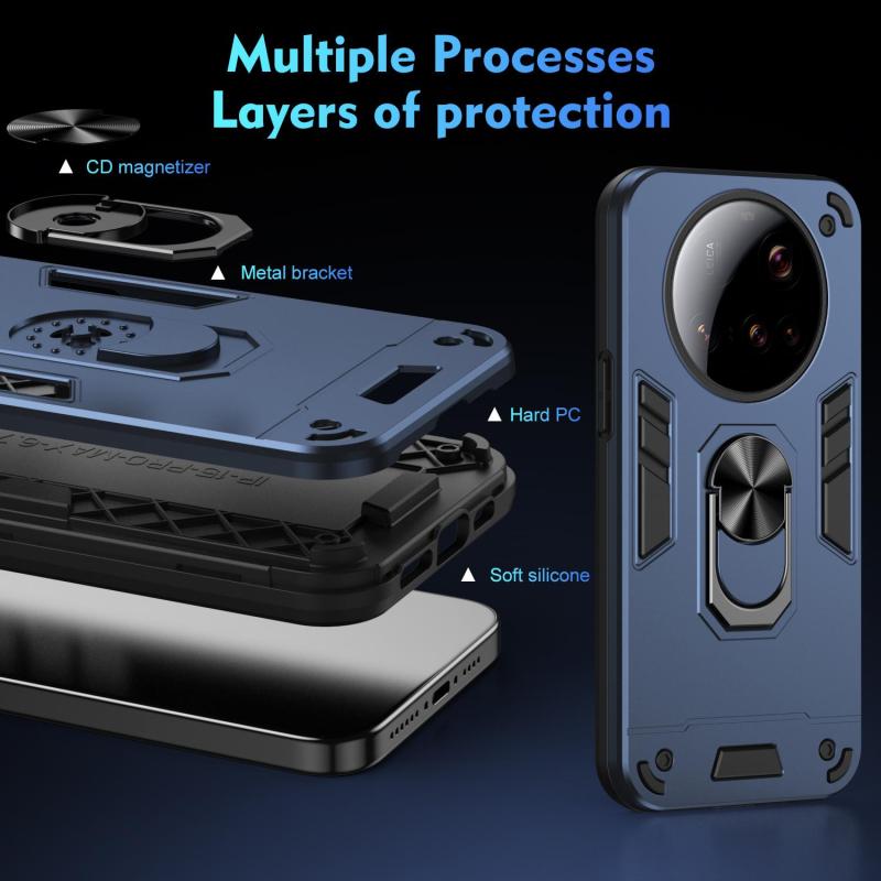 For Xiaomi 15 Ultra Shockproof Metal Ring Holder Phone Case(Blue)