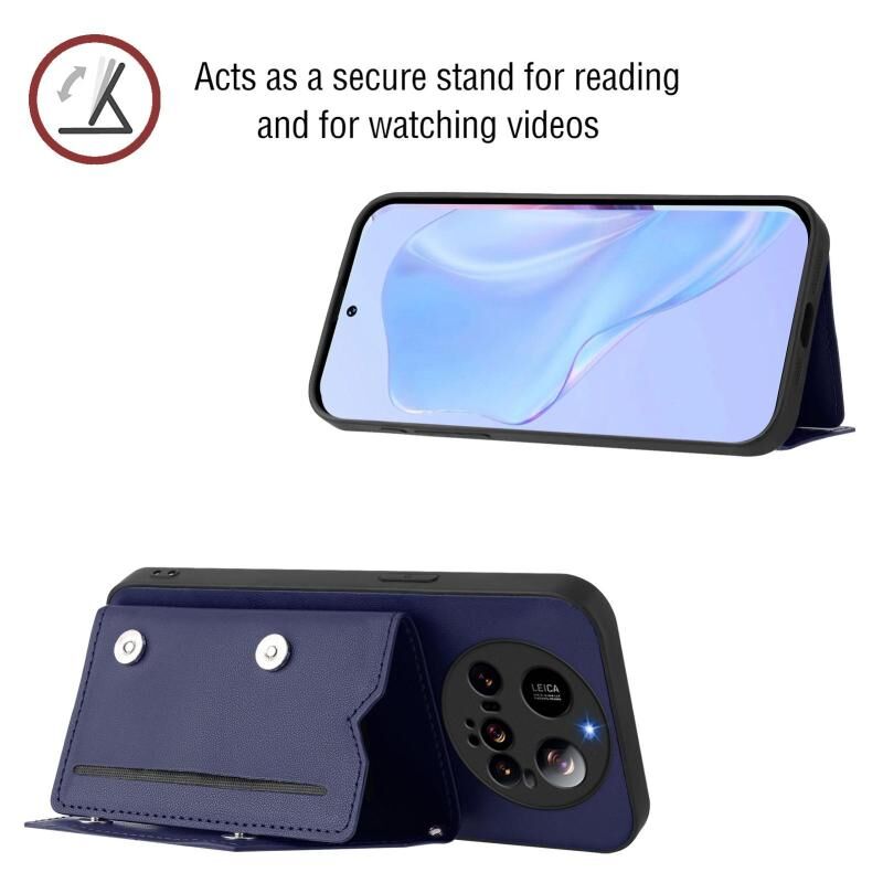 For Xiaomi 15 Ultra Skin Feel Four Card Slots Phone Case with Wrist Strap(Blue)