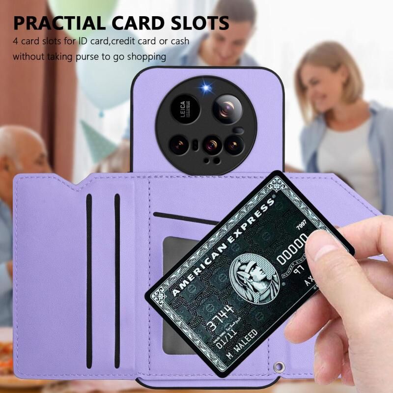 For Xiaomi 15 Ultra Skin Feel Four Card Slots Phone Case with Wrist Strap(Purple)