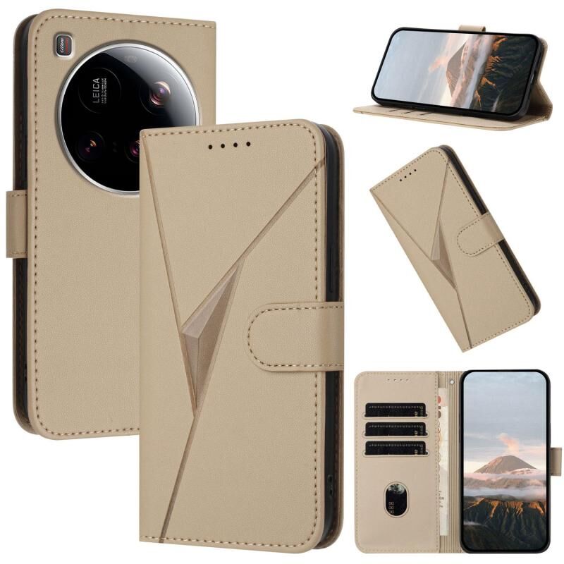 For Xiaomi 15 Ultra Triangle Pattern Buckle Clasp Leather Phone Case(Gold)