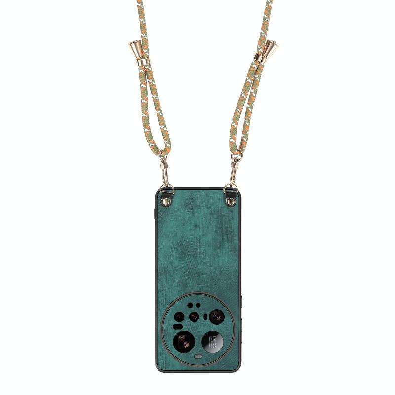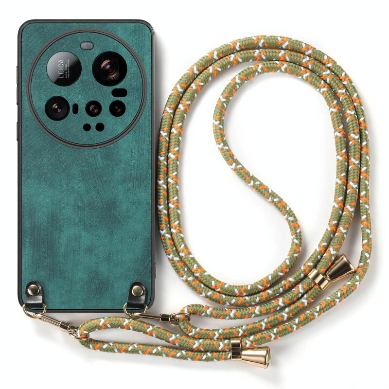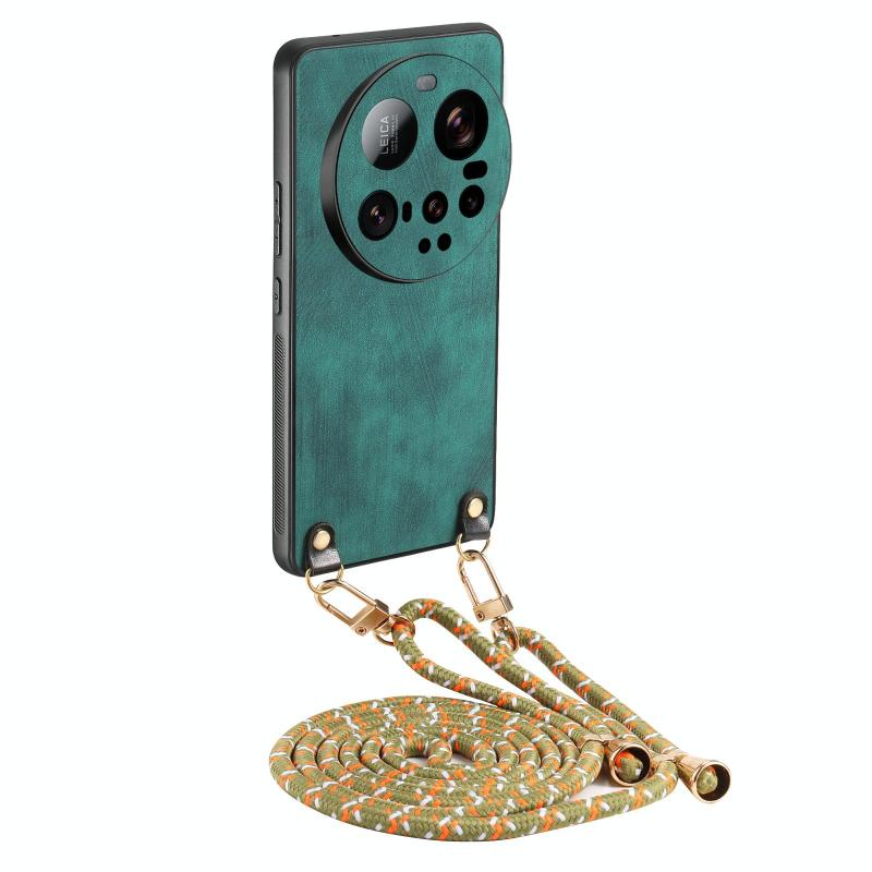 For Xiaomi 15 Ultra Vintage Leather PC Back Cover Phone Case with Crossbody Strap(Green)
