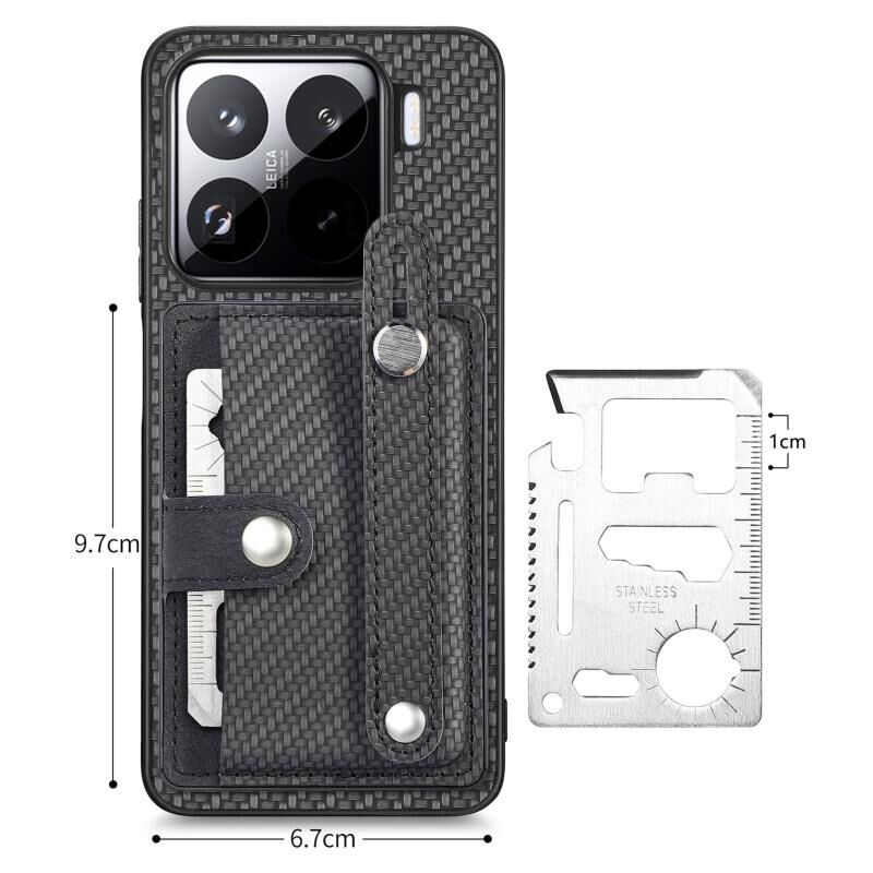 Για Xiaomi 15 Wristband Kickstand κάρτα πορτοφόλι πίσω τηλέφωνο υπόθεση με εργαλείο μαχαίρι (Μαύρο)
