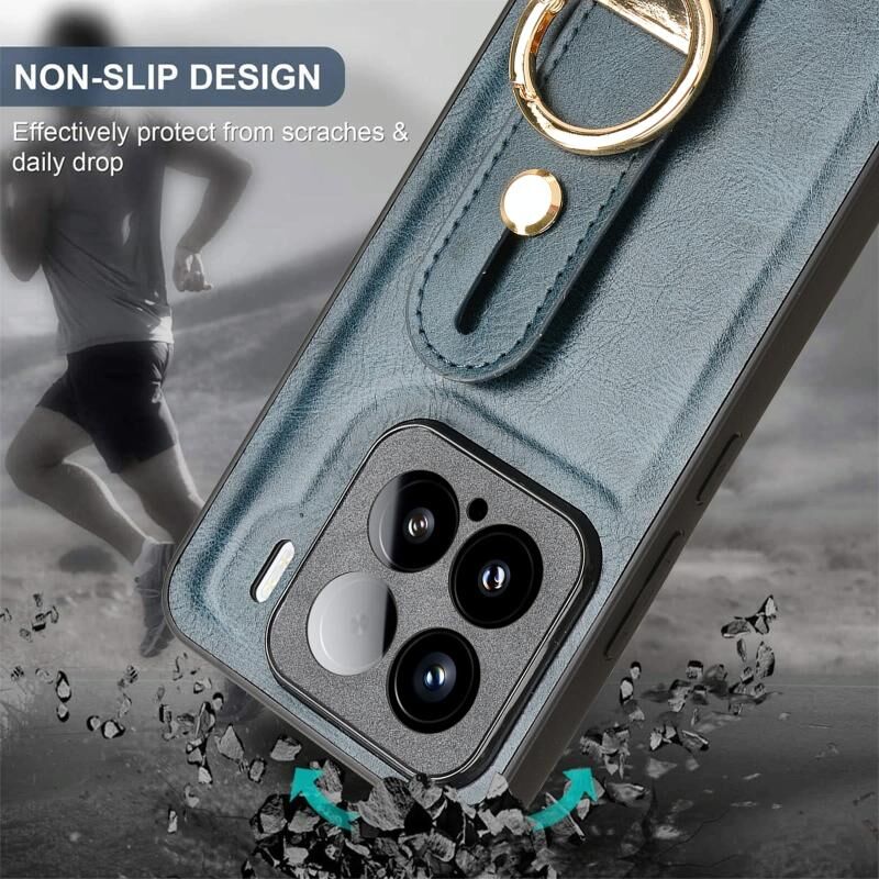 Για Xiaomi 15 Wristband δέρμα πίσω τηλέφωνο υπόθεση (μπλε)