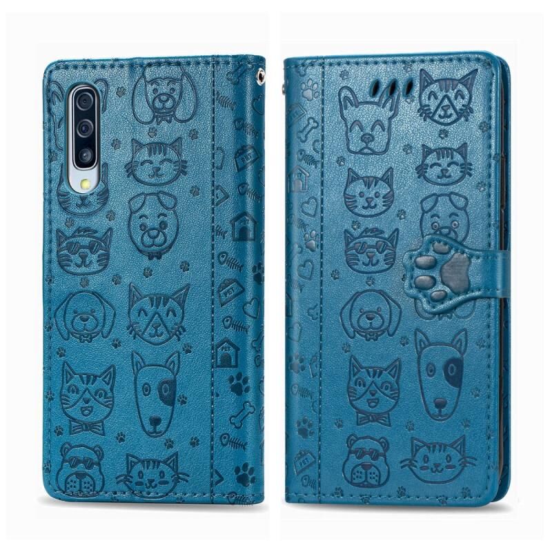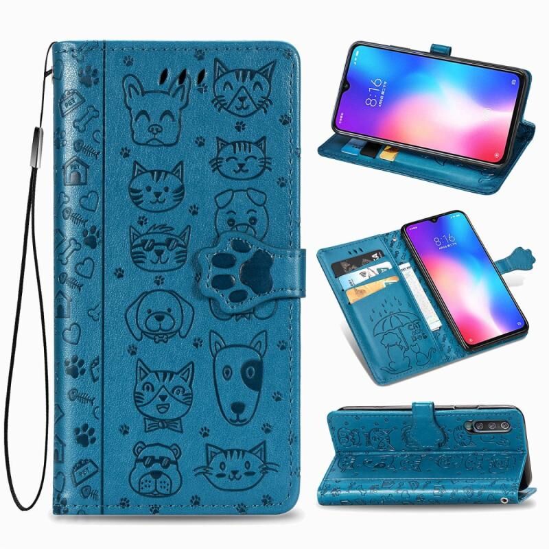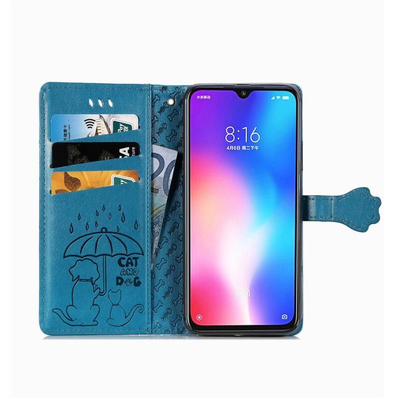 Θήκη δέρματος οριζόντιας αναδίπλωσης για Xiaomi 9 με χαριτωμένο σχέδιο γάτας και σκύλου, ανάγλυφο, με βάση στήριξης / υποδοχή κάρτας / πορτοφόλι / κορδόνι (Κίτρινο)