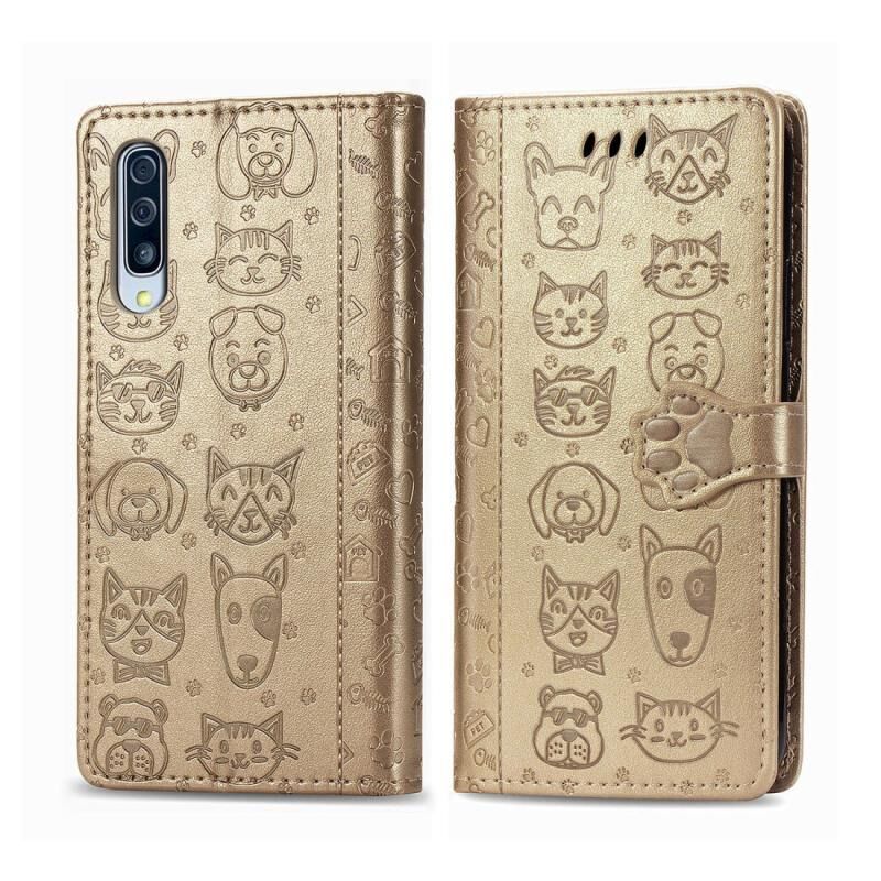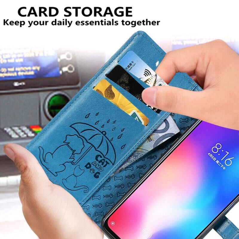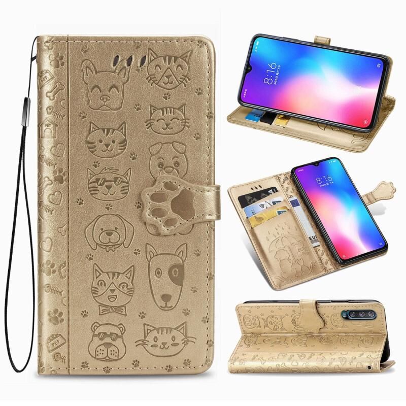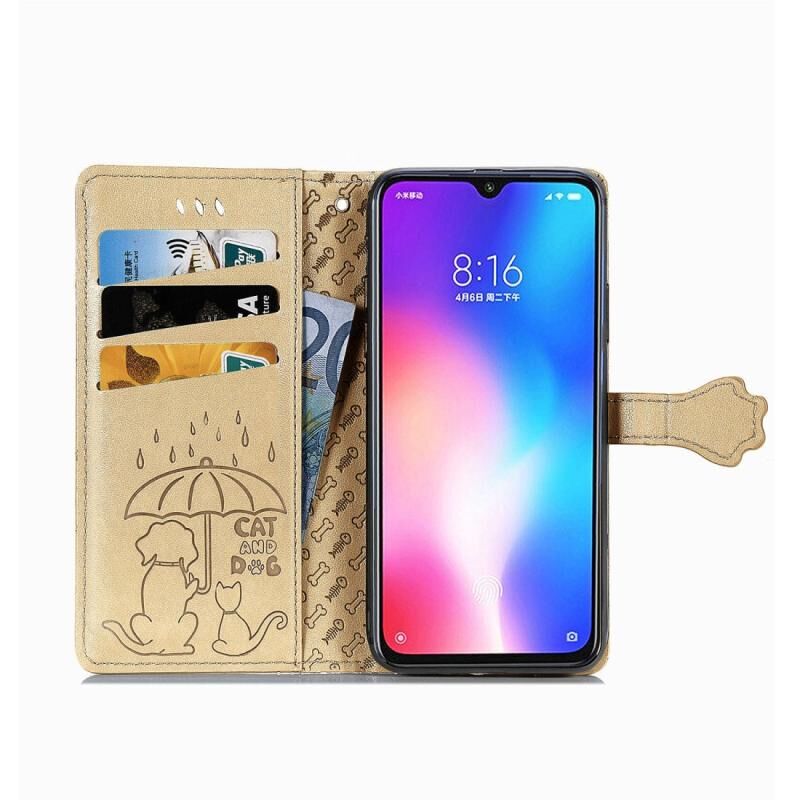 Θήκη δέρματος οριζόντιας αναδίπλωσης για Xiaomi 9 με χαριτωμένο σχέδιο γάτας και σκύλου, ανάγλυφο, με βάση στήριξης / υποδοχή κάρτας / πορτοφόλι / κορδόνι (Γκρι)