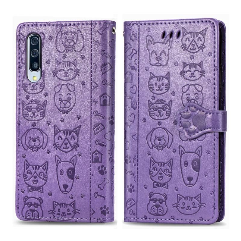 Θήκη δέρματος οριζόντιας αναδίπλωσης για Xiaomi 9 με χαριτωμένο σχέδιο γάτας και σκύλου, ανάγλυφο, με βάση στήριξης / υποδοχή κάρτας / πορτοφόλι / κορδόνι (Κίτρινο)