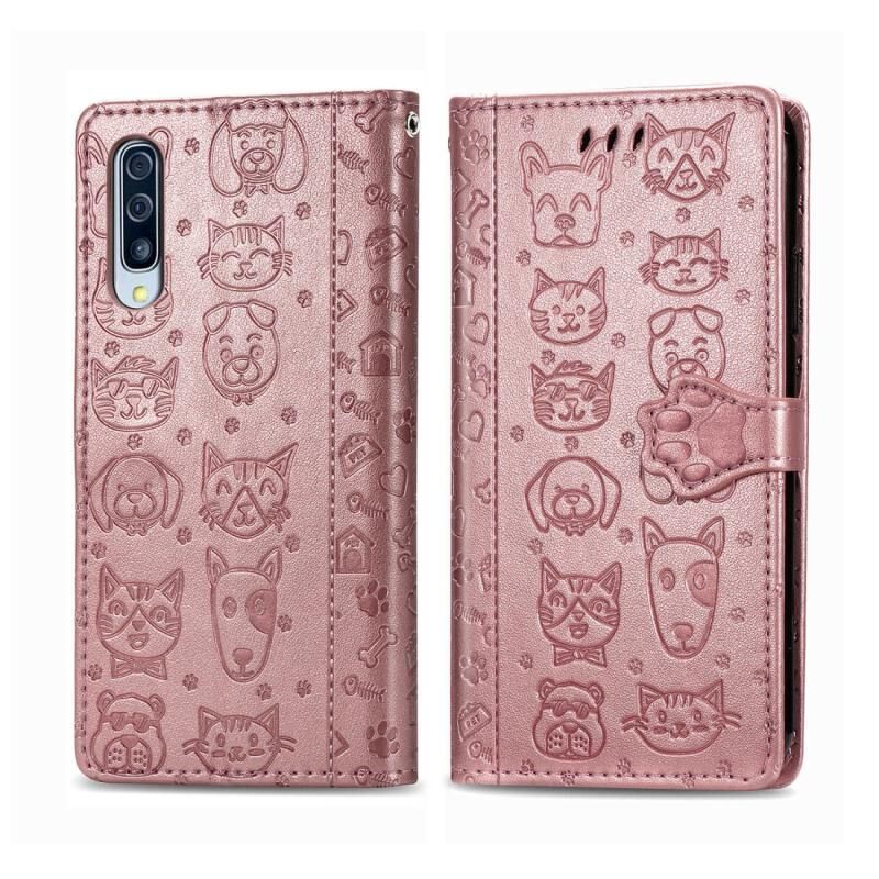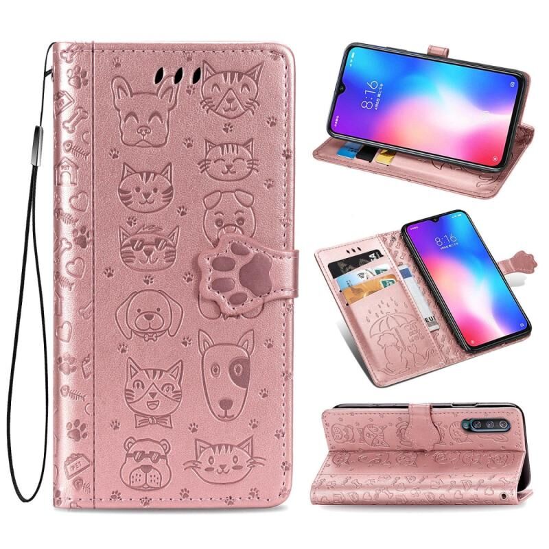 Θήκη δέρματος οριζόντιας αναδίπλωσης για Xiaomi 9 με χαριτωμένο σχέδιο γάτας και σκύλου, ανάγλυφο, με βάση στήριξης / υποδοχή κάρτας / πορτοφόλι / κορδόνι (Γκρι)