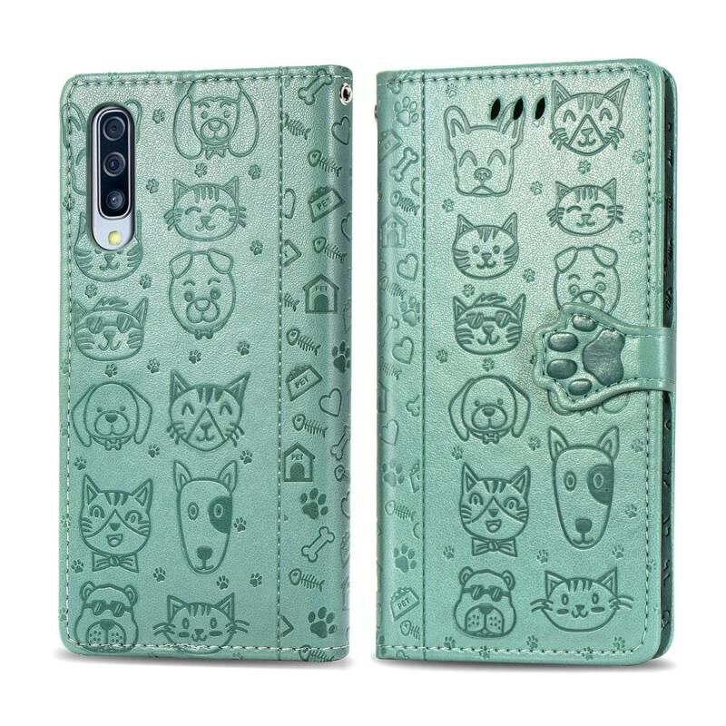 Θήκη δέρματος οριζόντιας αναδίπλωσης για Xiaomi 9 Se με χαριτωμένα σχέδια γάτας και σκύλου, με βάση στήριξης / υποδοχή κάρτας / πορτοφόλι / κορδόνι (Κίτρινο)