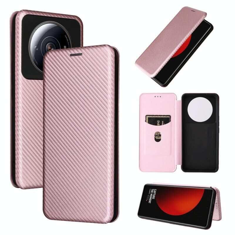 Για Xiaomi Μαύρος καρχαρίας 5 Carbon Fiber υφή Flip δέρμα τηλέφωνο υπόθεση (ροζ)