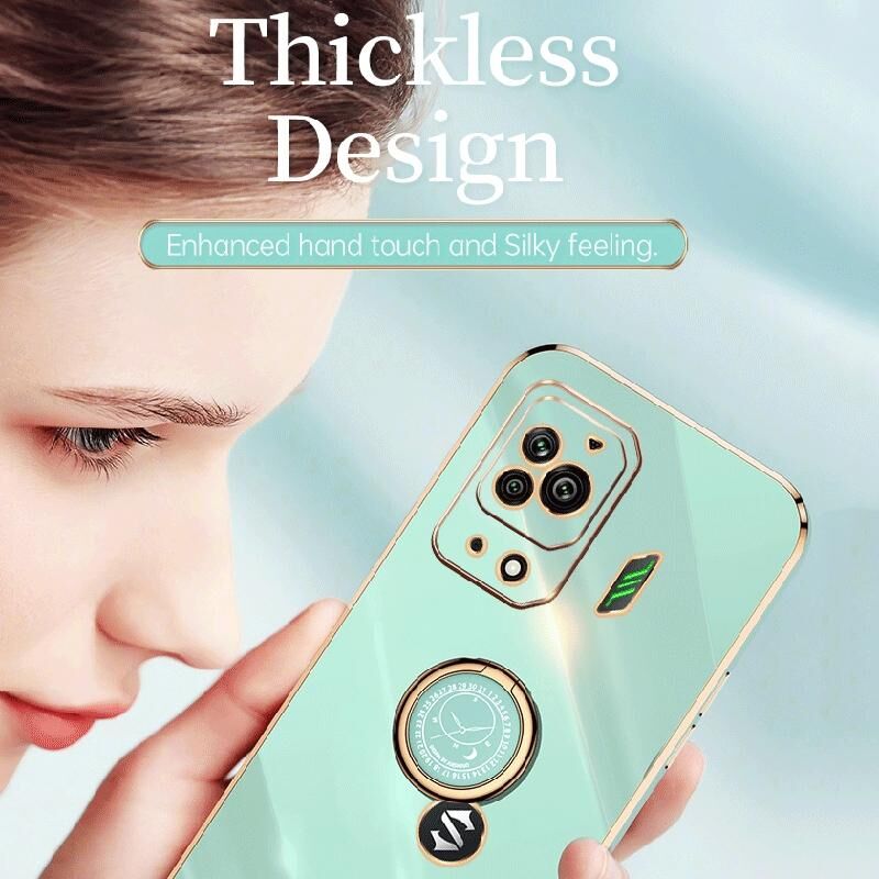 Θήκη κινητού τηλεφώνου Xiaomi Black Shark 5 Pro XINLI με ευθεία άκρη, 6D επιμετάλλωση TPU με δακτύλιο στήριξης (Μέντα Πράσινο) (Κόκκινο της αγριομηλιάς)