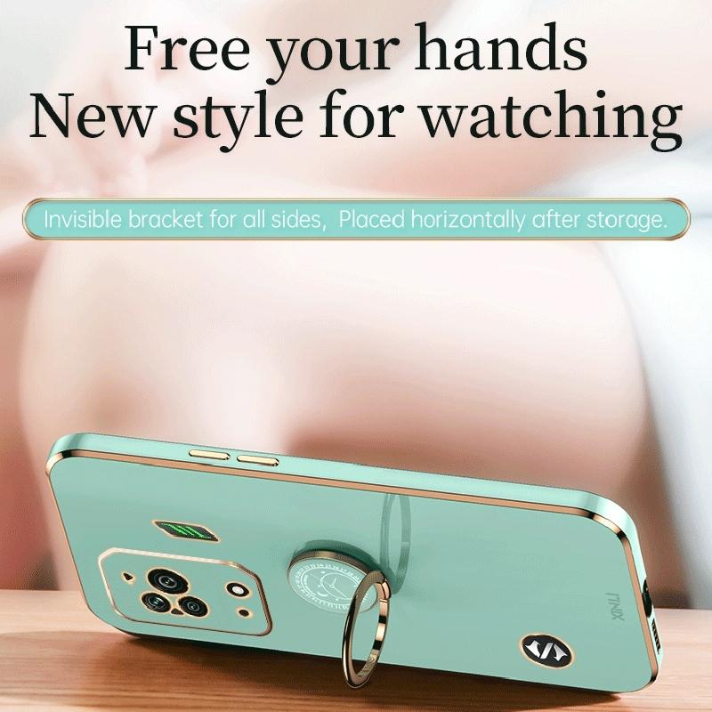 Θήκη κινητού Xiaomi Black Shark 5 XINLI με ευθείες άκρες, ηλεκτρολυτική επίστρωση TPU και δακτύλιο στήριξης (Μέντας Πράσινο)