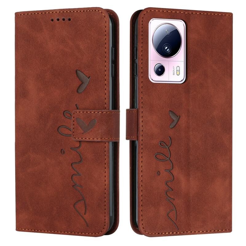 Για Xiaomi Civi 2 / 13 Lite δέρμα αίσθηση καρδιά μοτίβο δερμάτινη θήκη τηλεφώνου (καφέ)