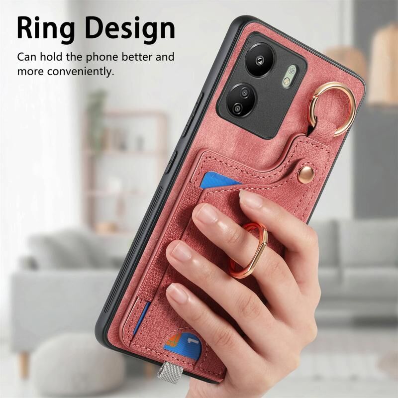 Για Xiaomi Civi 2 Ρετρό δέρμα αίσθηση δαχτυλίδι κάρτα τσάντα υπόθεση τηλεφώνου με Hang Loop (ροζ)