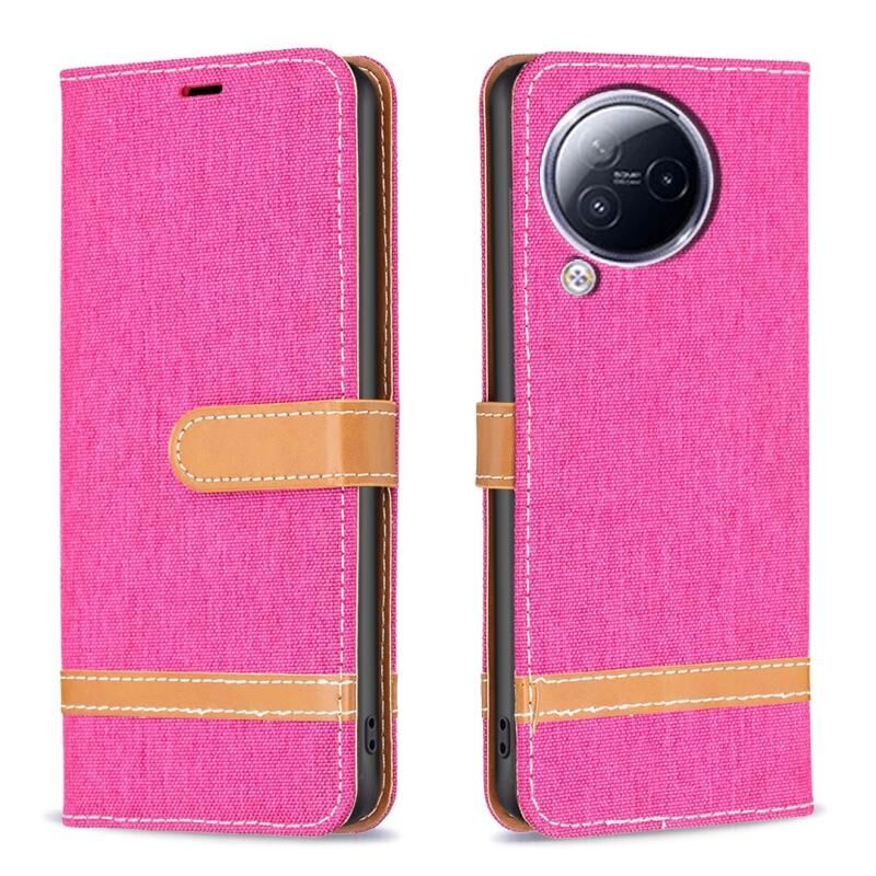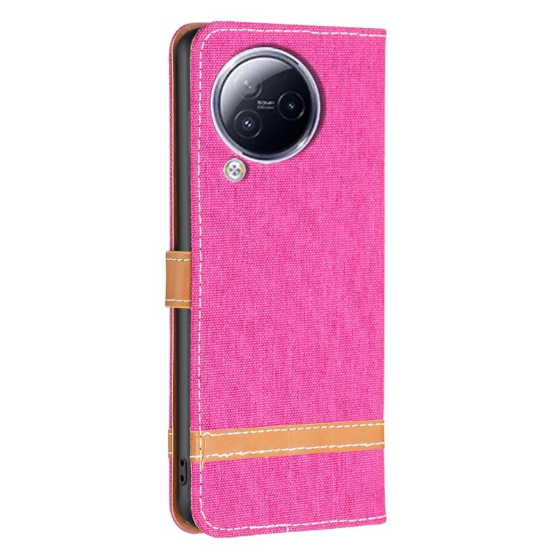 Θήκη τηλεφώνου Xiaomi Civi 3 5G από δέρμα με υφή τζιν και χρωματικό μπλοκ (Ροζέ κόκκινο)