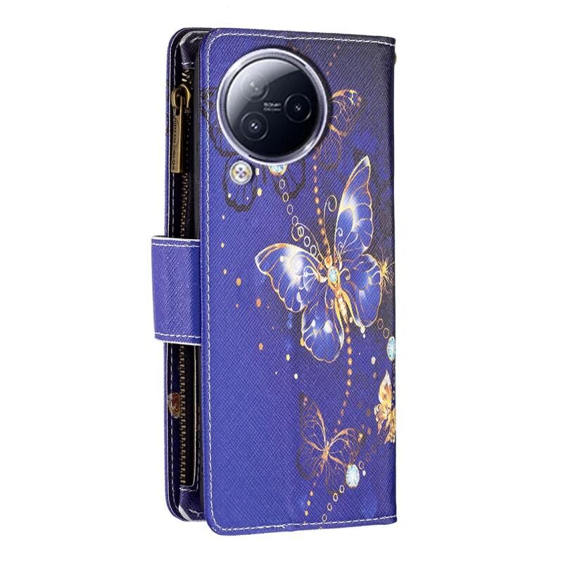 Θήκη τηλεφώνου δερμάτινη με φερμουάρ και πολύχρωμο σχέδιο για Xiaomi Civi 3 5G (Πεταλούδα Μωβ)