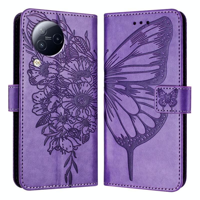 Για Xiaomi Civi 3 5G ανάγλυφη πεταλούδα δερμάτινη θήκη τηλεφώνου (Μωβ)