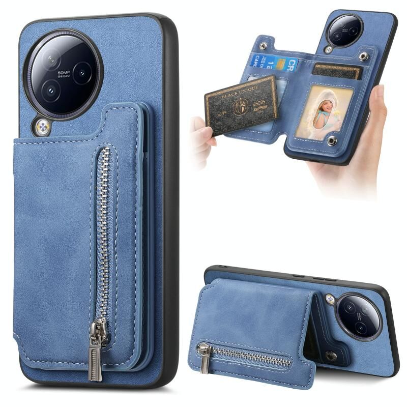 Για Xiaomi Civi 3 5G Ρετρό Θήκη Τηλεφώνου με Μαγνητική Στήριξη και Φερμουάρ, Θήκη Κάρτας (Μπλε)