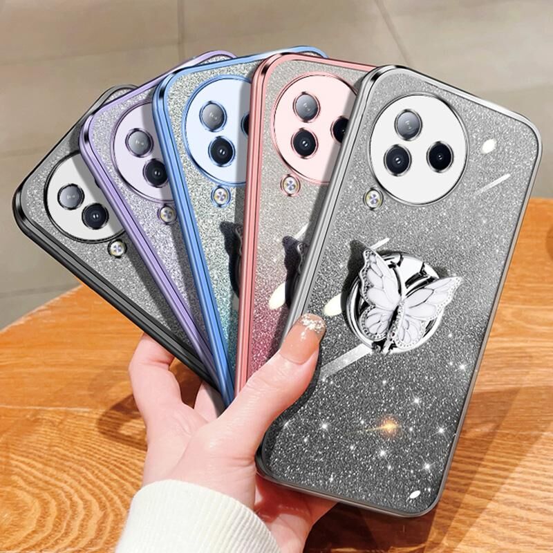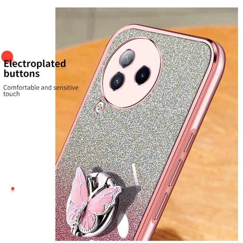 Θήκη τηλεφώνου TPU με επιμετάλλωση, διαβαθμισμένη λάμψη και σχέδιο πεταλούδας για Xiaomi Civi 3 (ρόζ)