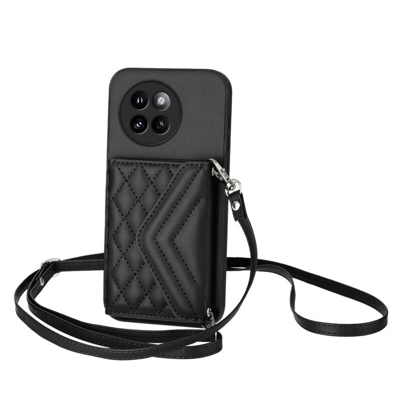 Για Xiaomi Civi 4 Pro Rhombic υφή κάρτα τσάντα RFID υπόθεση τηλεφώνου με μακρύ κορδόνι (Μαύρο)