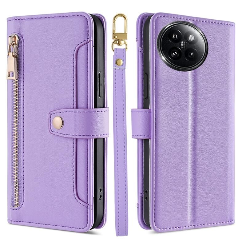 Για Xiaomi Civi 4 Pro Sheep Texture Cross-body φερμουάρ πορτοφόλι δερμάτινη θήκη τηλεφώνου (Μωβ)