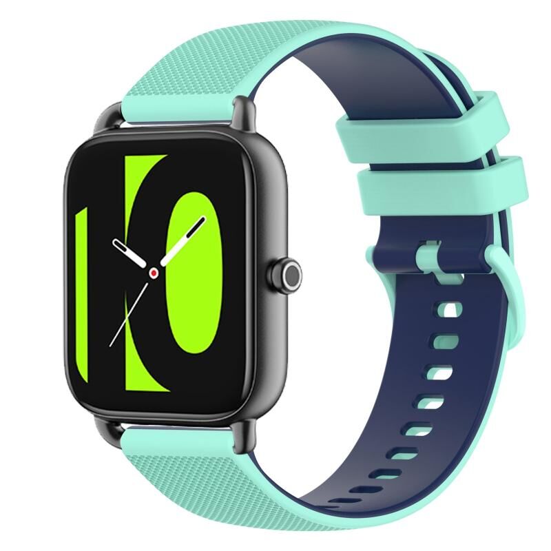 For Xiaomi Haylou RS4 LS12 22mm Checkered Two-Color Silicone Watch Band(Teal+Blue)
