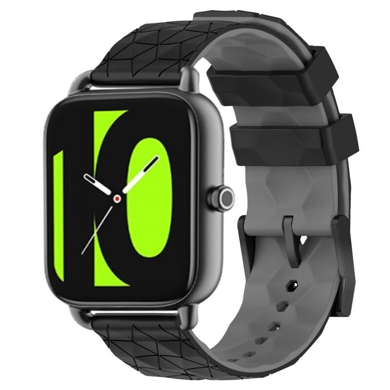 Για Xiaomi Haylou RS4 LS12 22 χιλιοστά ποδοσφαίρου μοτίβο δύο χρωμάτων σιλικόνης ρολόι μπάντα (μαύρο + γκρι)