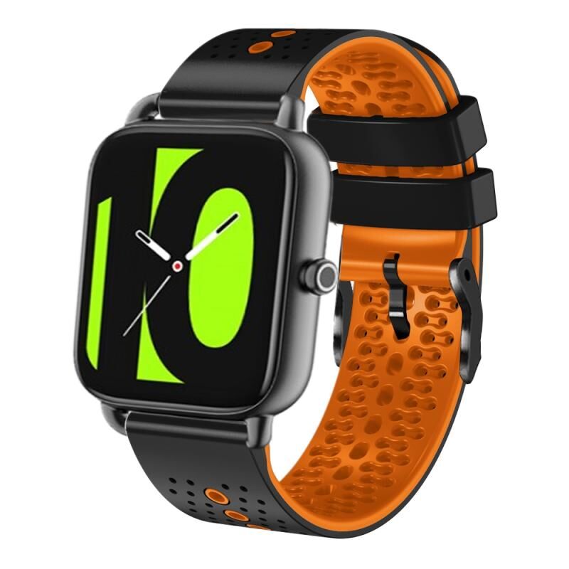 Για Xiaomi Haylou RS4 LS12 22 χιλιοστά διάτρητη ζώνη ρολογιού σιλικόνης δύο χρωμάτων (μαύρο + πορτοκαλί)