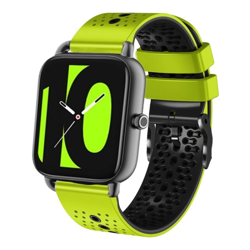 Για Xiaomi Haylou RS4 LS12 22 χιλιοστά διάτρητη ζώνη ρολογιού σιλικόνης δύο χρωμάτων (Lime + Μαύρο)