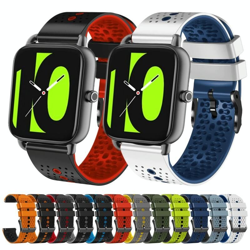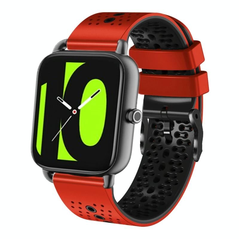 Για Xiaomi Haylou RS4 LS12 22 χιλιοστά διάτρητη ζώνη ρολογιού σιλικόνης δύο χρωμάτων (κόκκινο+μαύρο)
