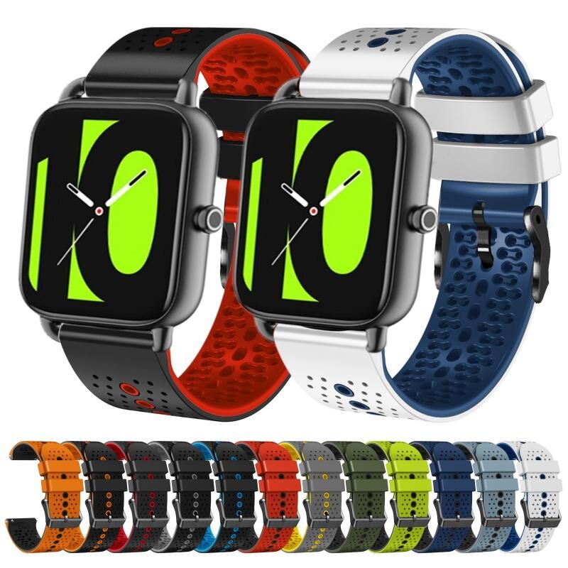 Για Xiaomi Haylou RS4 LS12 22 χιλιοστά διάτρητη ζώνη ρολογιού σιλικόνης δύο χρωμάτων (λευκό + μπλε)