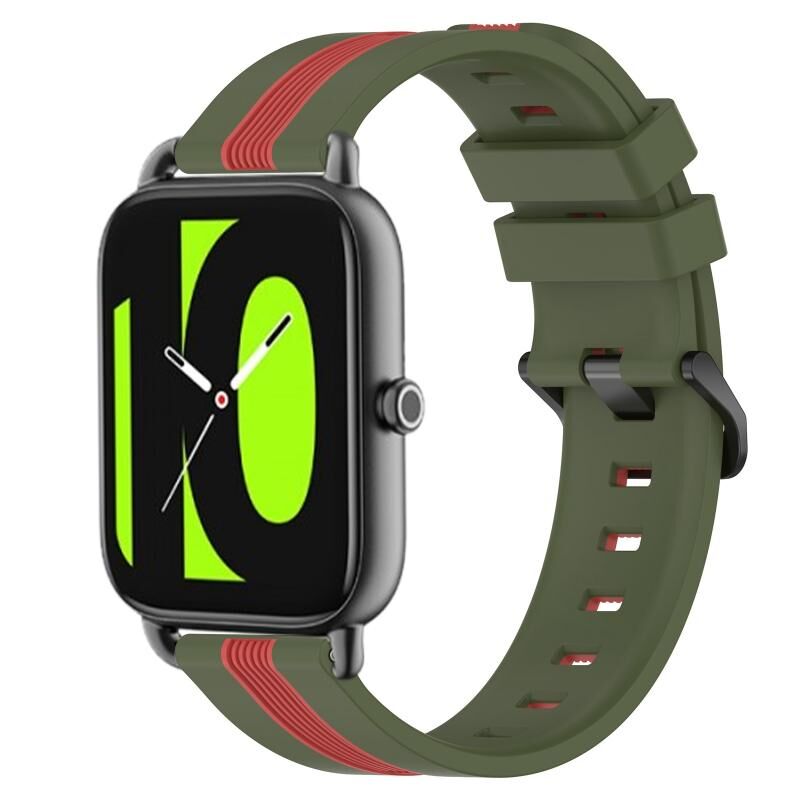 Για Xiaomi Haylou RS4 LS12 22mm Κάθετη ζώνη ρολογιού σιλικόνης δύο χρωμάτων (πράσινο στρατού + κόκκινο)