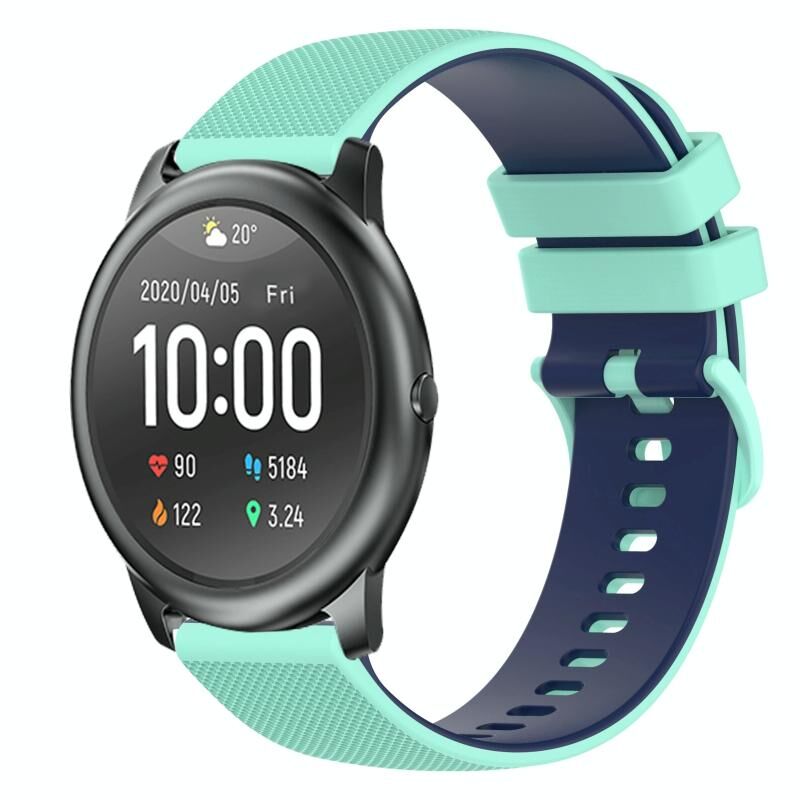 Για Xiaomi Haylou RT LS05S 22mm Checkered δύο χρωμάτων σιλικόνης ρολόι μπάντα (Teal + μπλε)