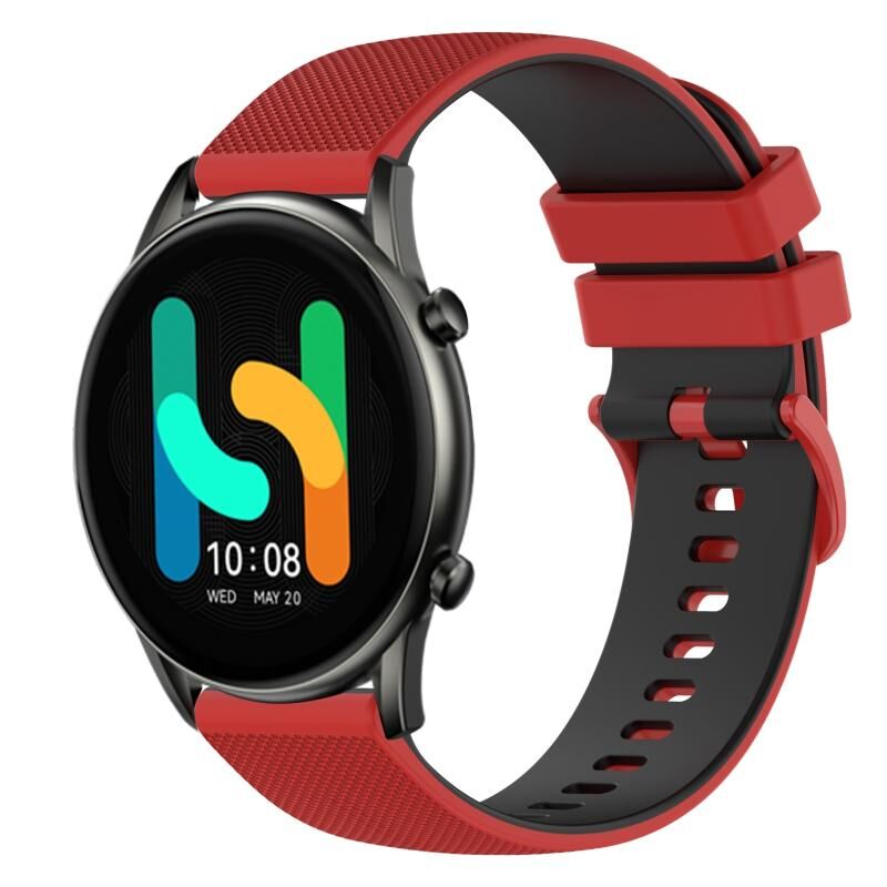 For Xiaomi Haylou RT2 LS10 22mm Checkered Two-Color Silicone Watch Band(Red+Black)