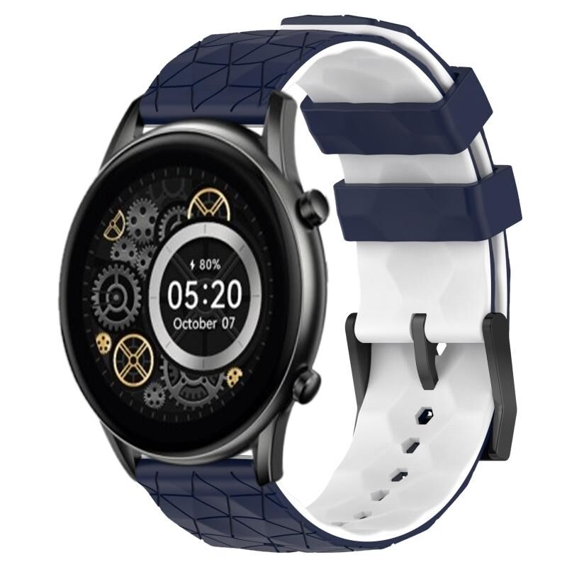 Για Xiaomi Haylou RT2 LS10 22 χιλιοστά ποδοσφαιρικό μοτίβο δύο χρωμάτων σιλικόνης ρολόι μπάντα ρολογιού (Midnight Blue + Λευκό)