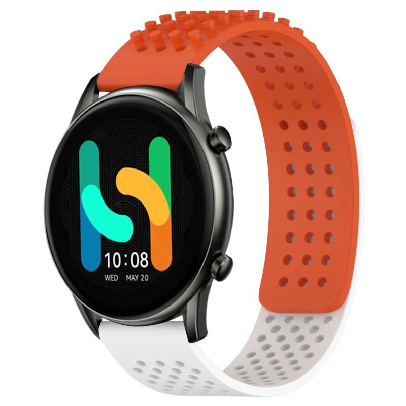 Λουράκι Σιλικόνης 22mm για Xiaomi Haylou RT2 LS10 με 3D Dots (Πορτοκαλί+Λευκό)