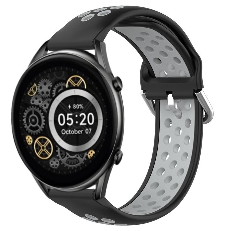 Για Xiaomi Haylou RT2 LS10 22mm διάτρητη αναπνεύσιμη αθλητική ζώνη ρολογιού σιλικόνης (μαύρο + γκρι)