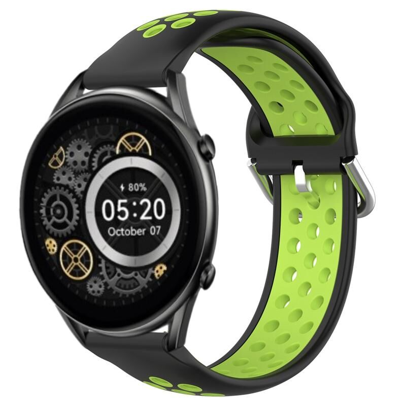 Για Xiaomi Haylou RT2 LS10 22mm διάτρητη αναπνεύσιμη αθλητική ζώνη ρολογιού σιλικόνης (Μαύρο+Lime)