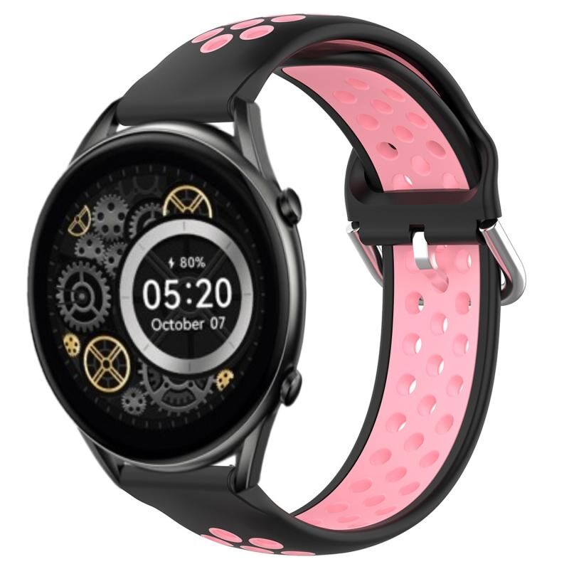 Για Xiaomi Haylou RT2 LS10 22mm διάτρητο αναπνεύσιμο αθλητικό λουράκι σιλικόνης (μαύρο+ροζ)