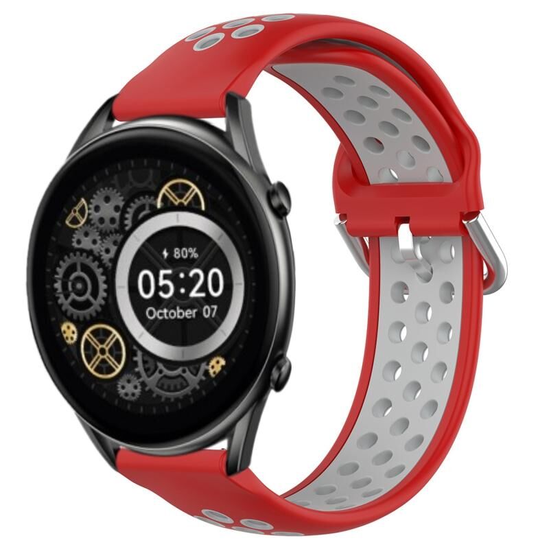 Για Xiaomi Haylou RT2 LS10 22mm διάτρητη αναπνεύσιμη αθλητική ζώνη ρολογιού σιλικόνης (κόκκινο + γκρι)