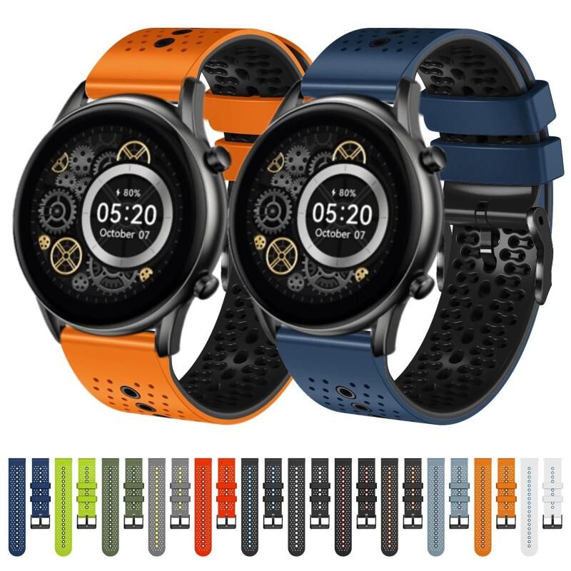 Για Xiaomi Haylou RT2 LS10 22 χιλιοστά διάτρητη ζώνη ρολογιού σιλικόνης δύο χρωμάτων (πράσινο στρατού+μαύρο)